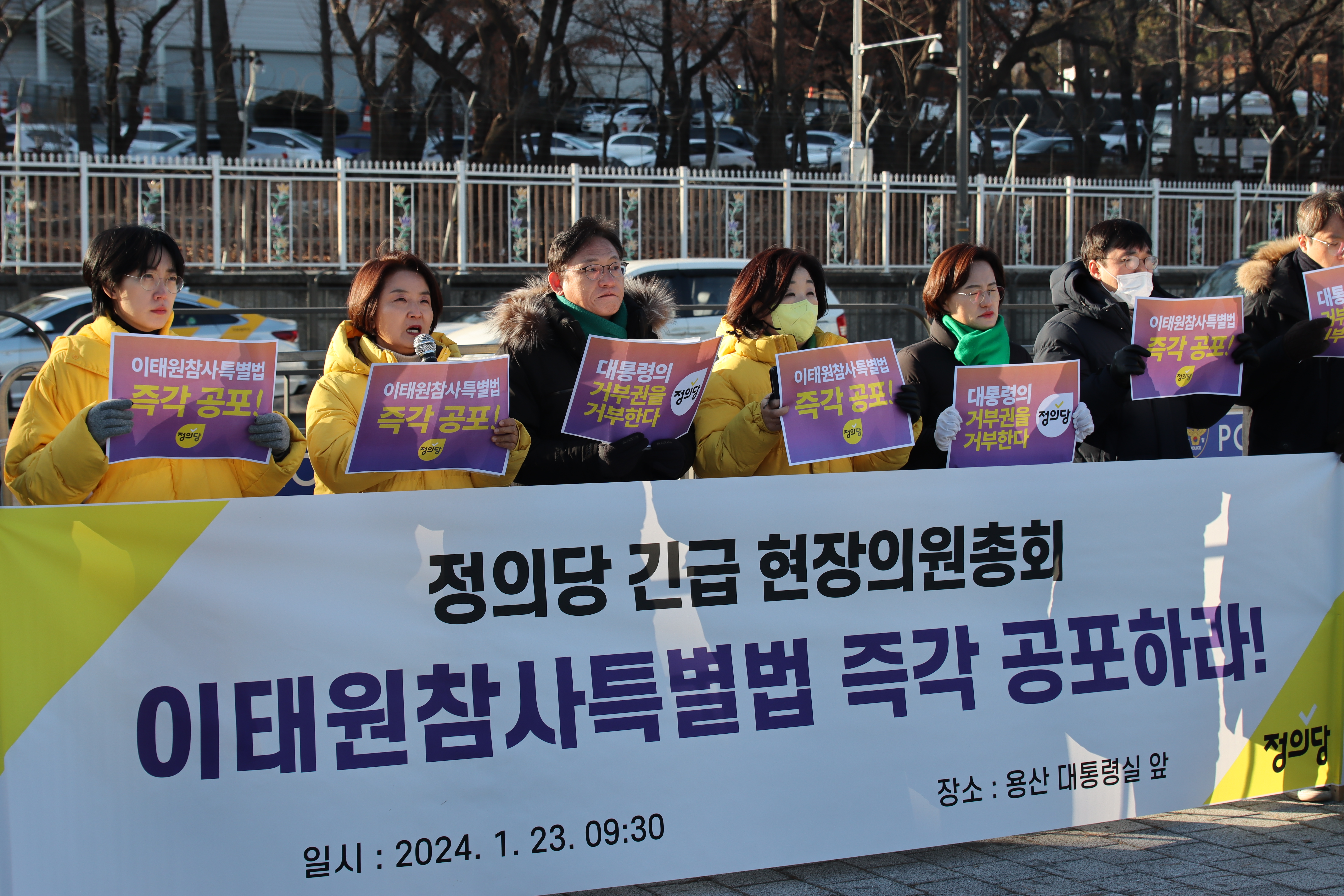 윤석열 대통령이 끝내 이태원특별법을 거부한다면, 정부와 대통령의 존재 이유는 시민들로부터 거부될 수밖에 없다는 것을 분명히 경고합니다. 이제라도 윤석열 대통령이 이태원특별법을 즉각 공포하는 것이야말로 고인과 유족에 대한 최소한의 사과이며, 당연한 정치적 책임이라는 것을 분명히 말씀드립니다.
